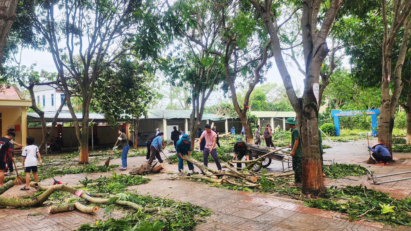 Sau cơn bão đi qua, mái trường thân yêu của chúng ta cũng bị ảnh hưởng nặng nề. Nhưng với tinh thần đoàn kết và sự chung tay, đồng lòng của nhiều lực lượng, ngôi trường đã nhanh chóng được dọn dẹp, khang trang trở lại, sẵn sàng chào đón các em học sinh bước vào năm học mới đầy hứng khởi.