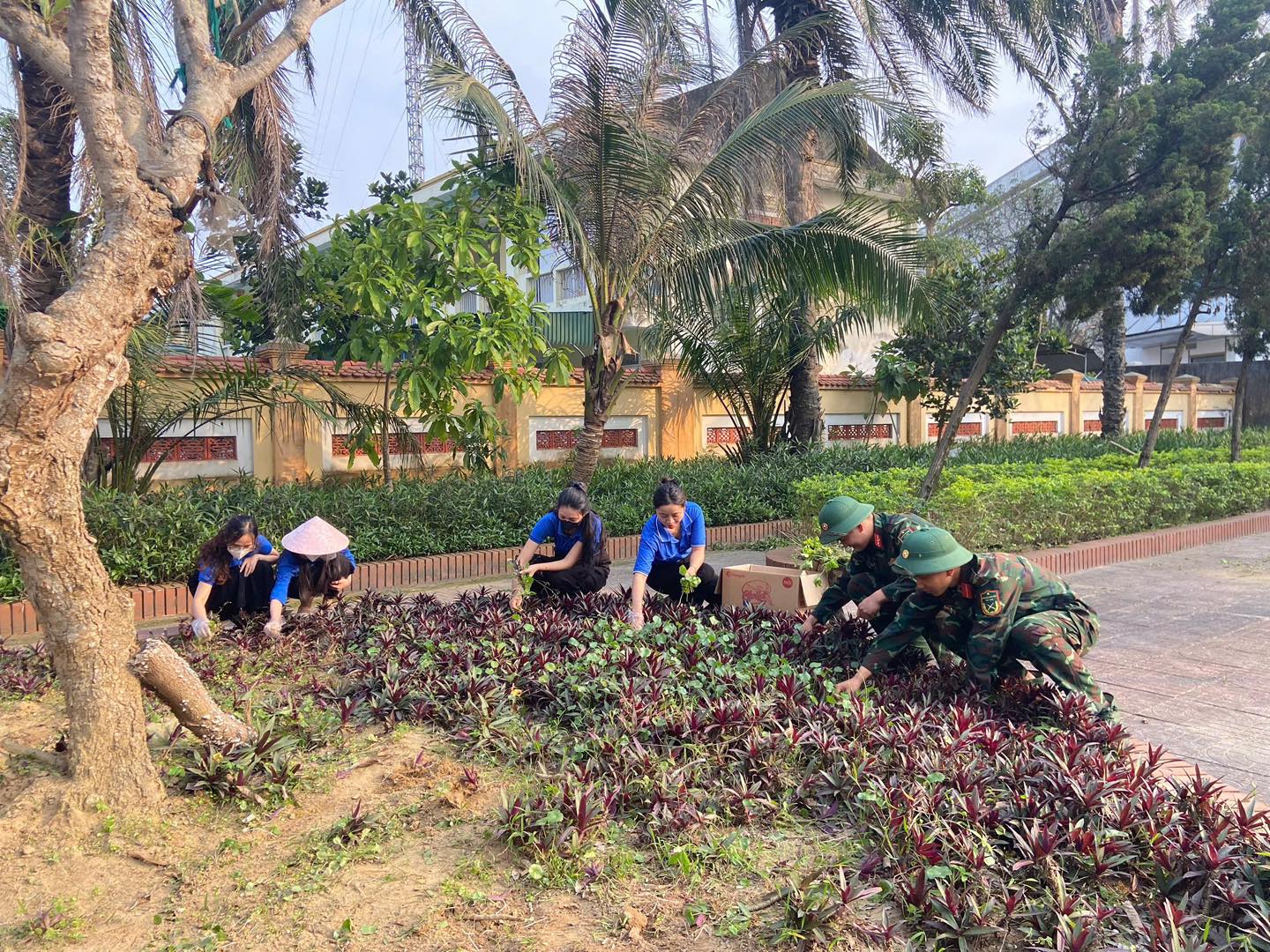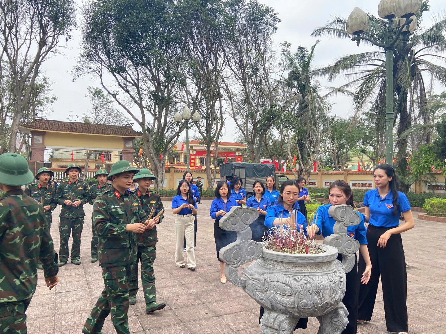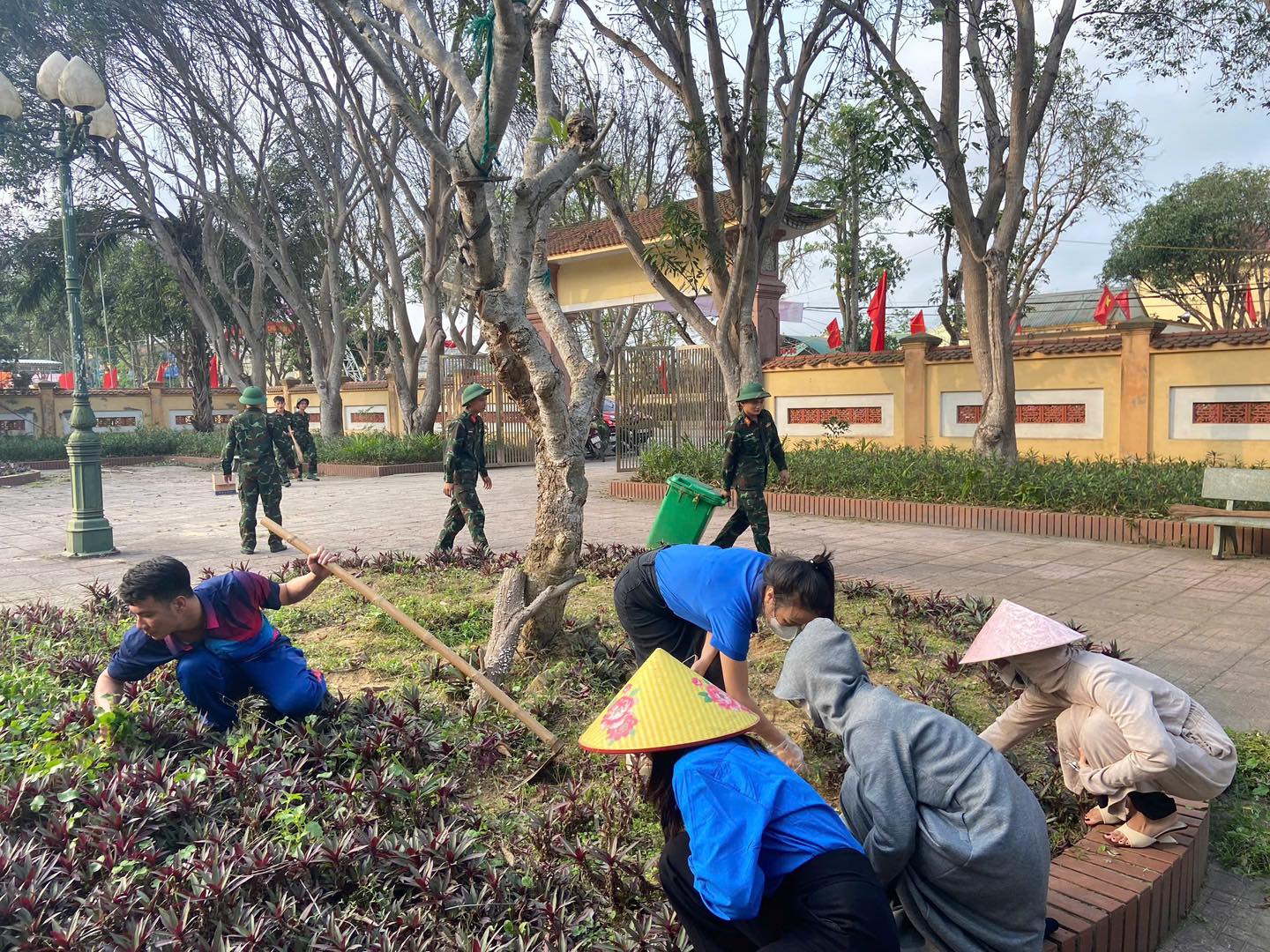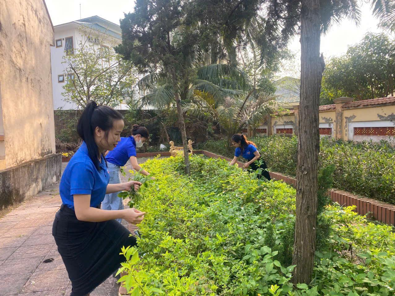 Tổng dọn vệ sinh, phát quang cây cỏ, quét dọn và làm sạch khuôn viên đài tưởng niệm.