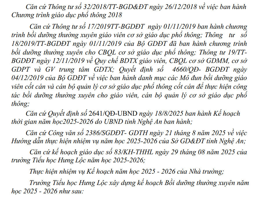 KẾ HOẠCH BỒI DƯỠNG THƯỜNG XUYÊN NĂM HỌC 2025-2026